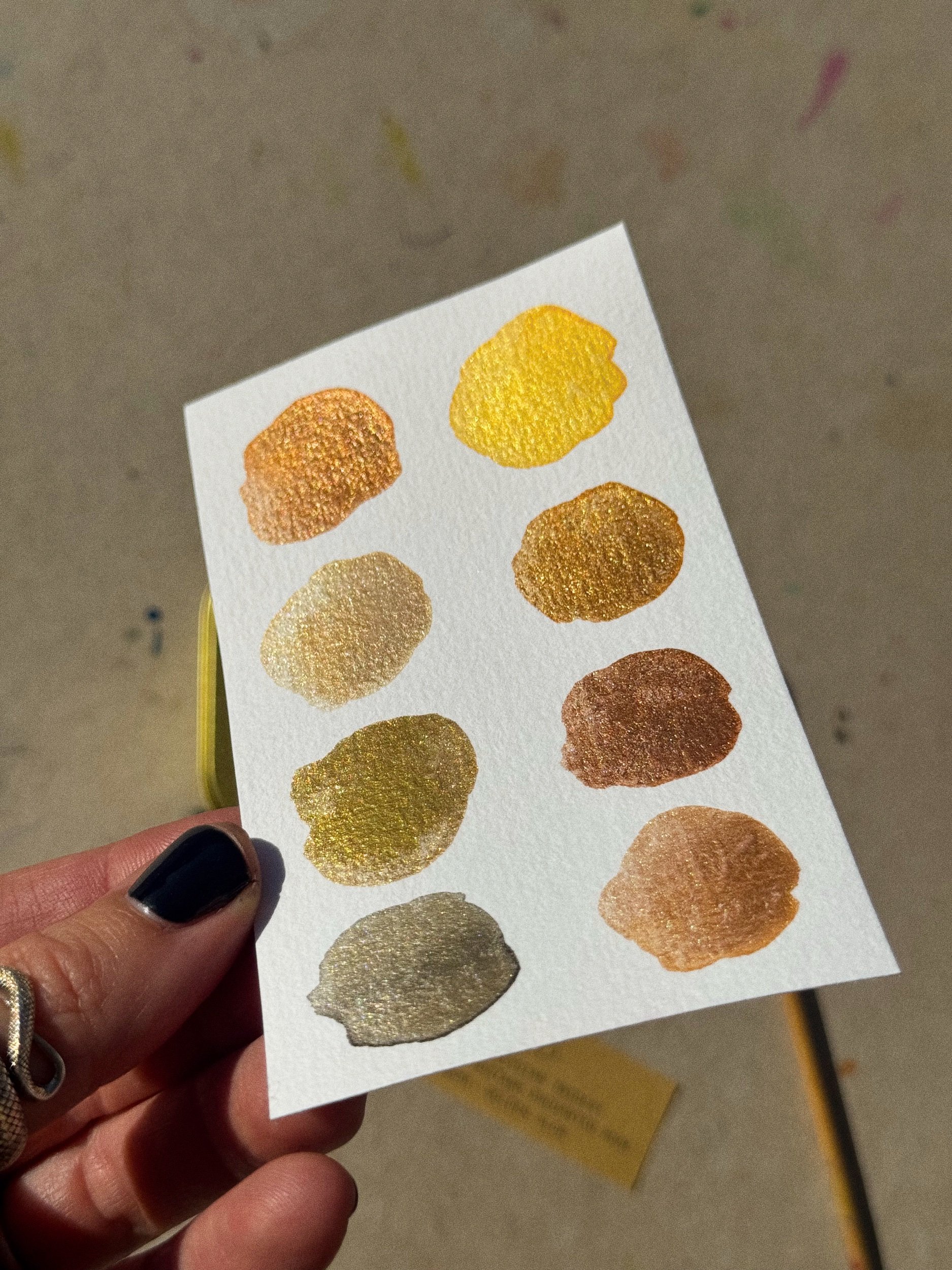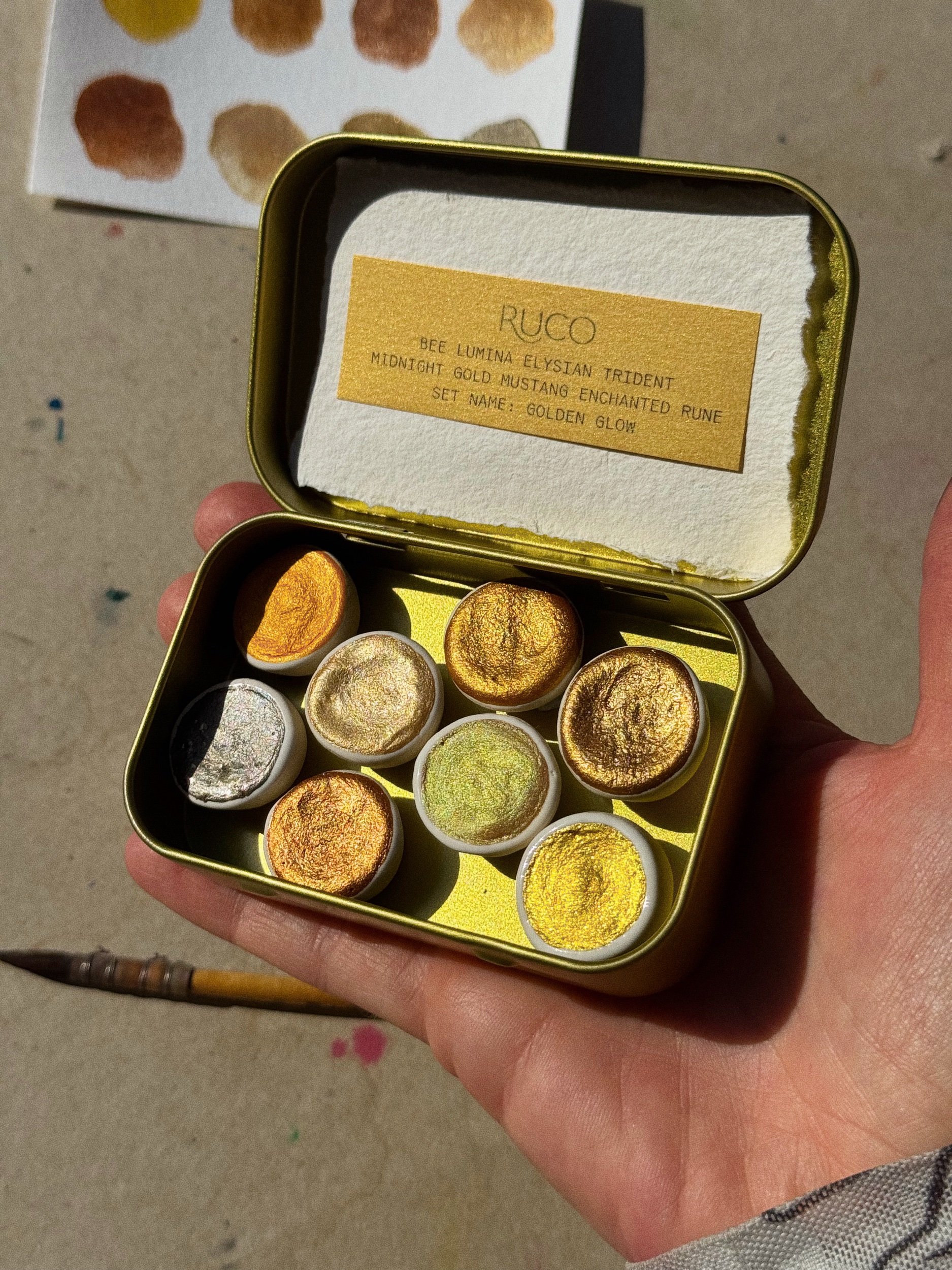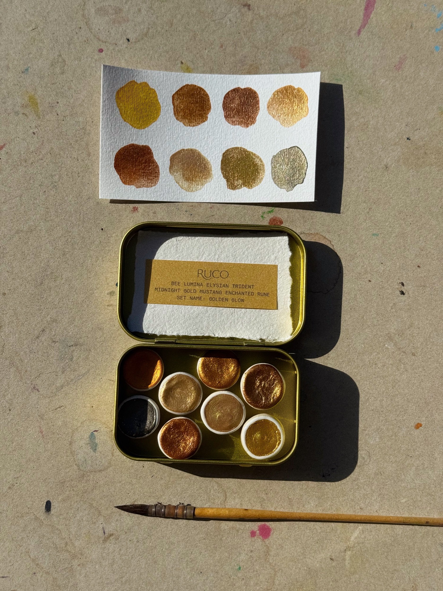 The colours in this collection are unique signature blends exclusive to Ruco. They are called Seaweed, Coffee, Moringa, Swirl, Clown, Happiness, Moonglade and Aretha. All are hand mulled in small batches with only the finest artist grade and lightfast pigments. This collection is very granulating and textural. It has some colours which separate to create truely unique effects in your art works.