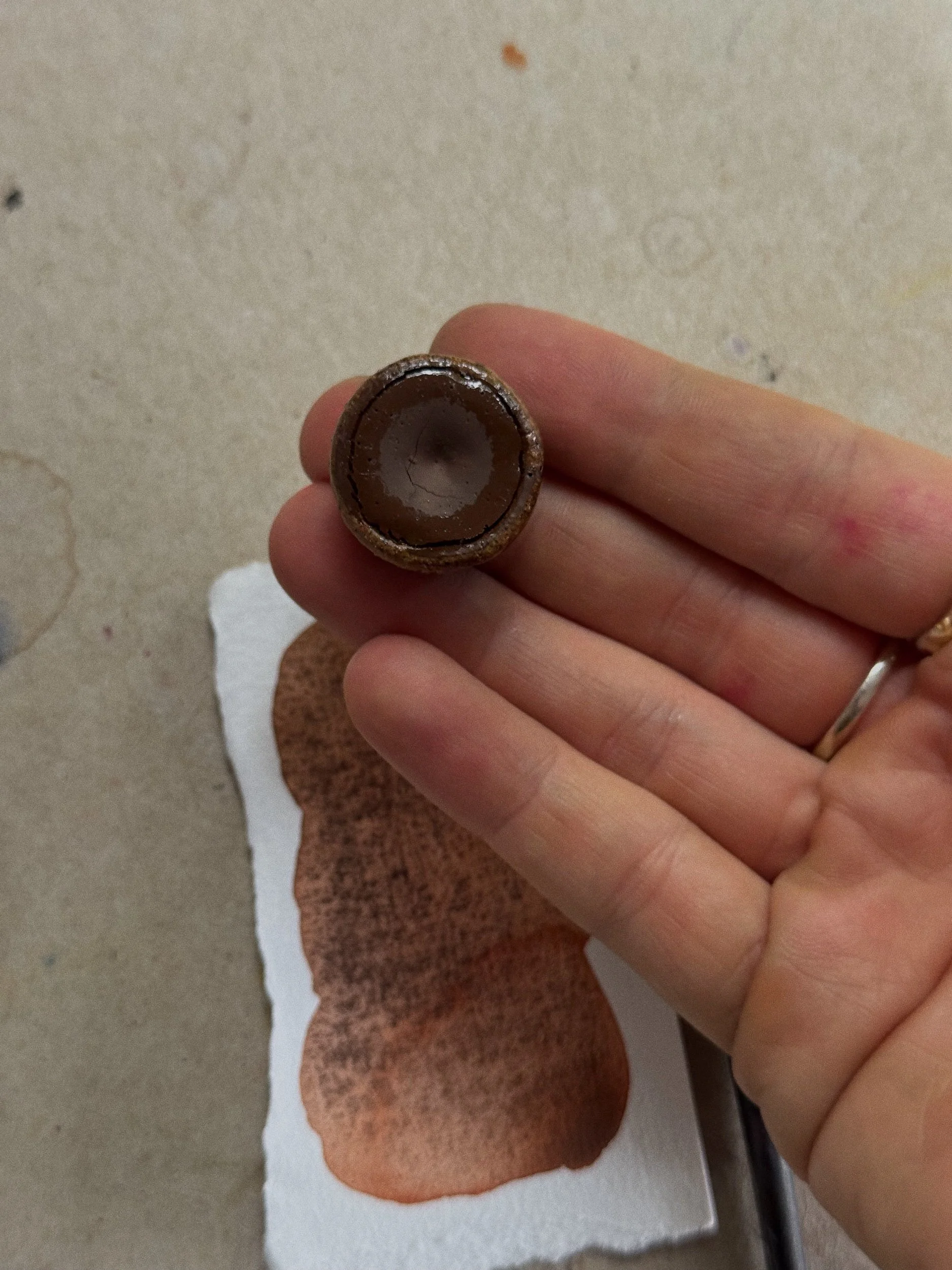 Beth, a limited edition watercolour from the Prairie Whispers Collection, is a baby pink blend which is slightly staining and granulated. It is made and poured in several layers into a tan ceramic paint pot which is refillable if you run out. Contains approximately a half pan + worth of paint.