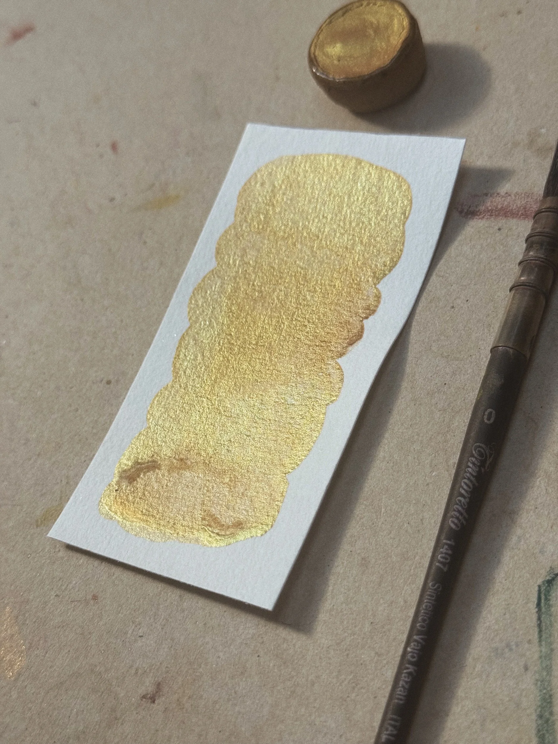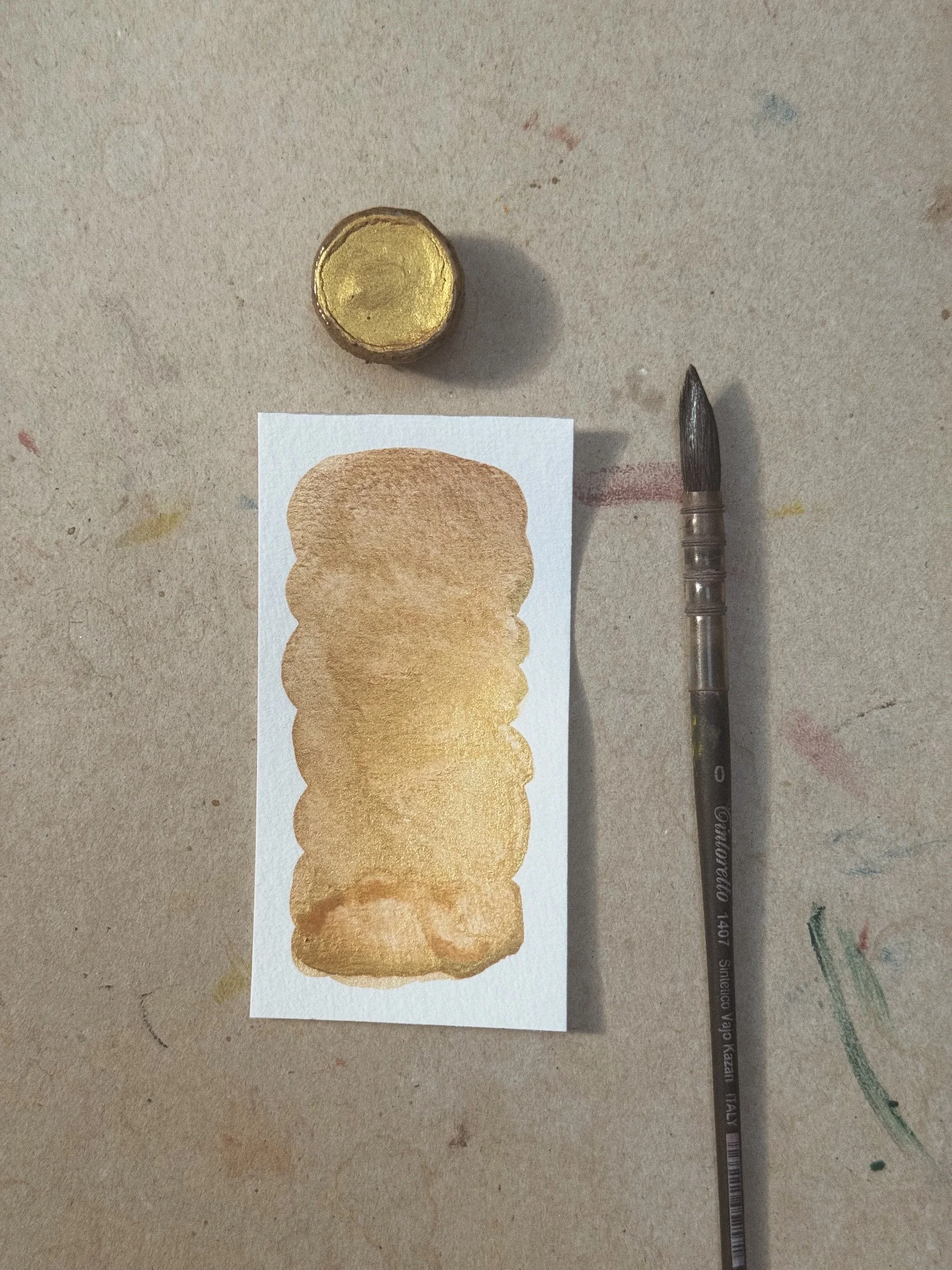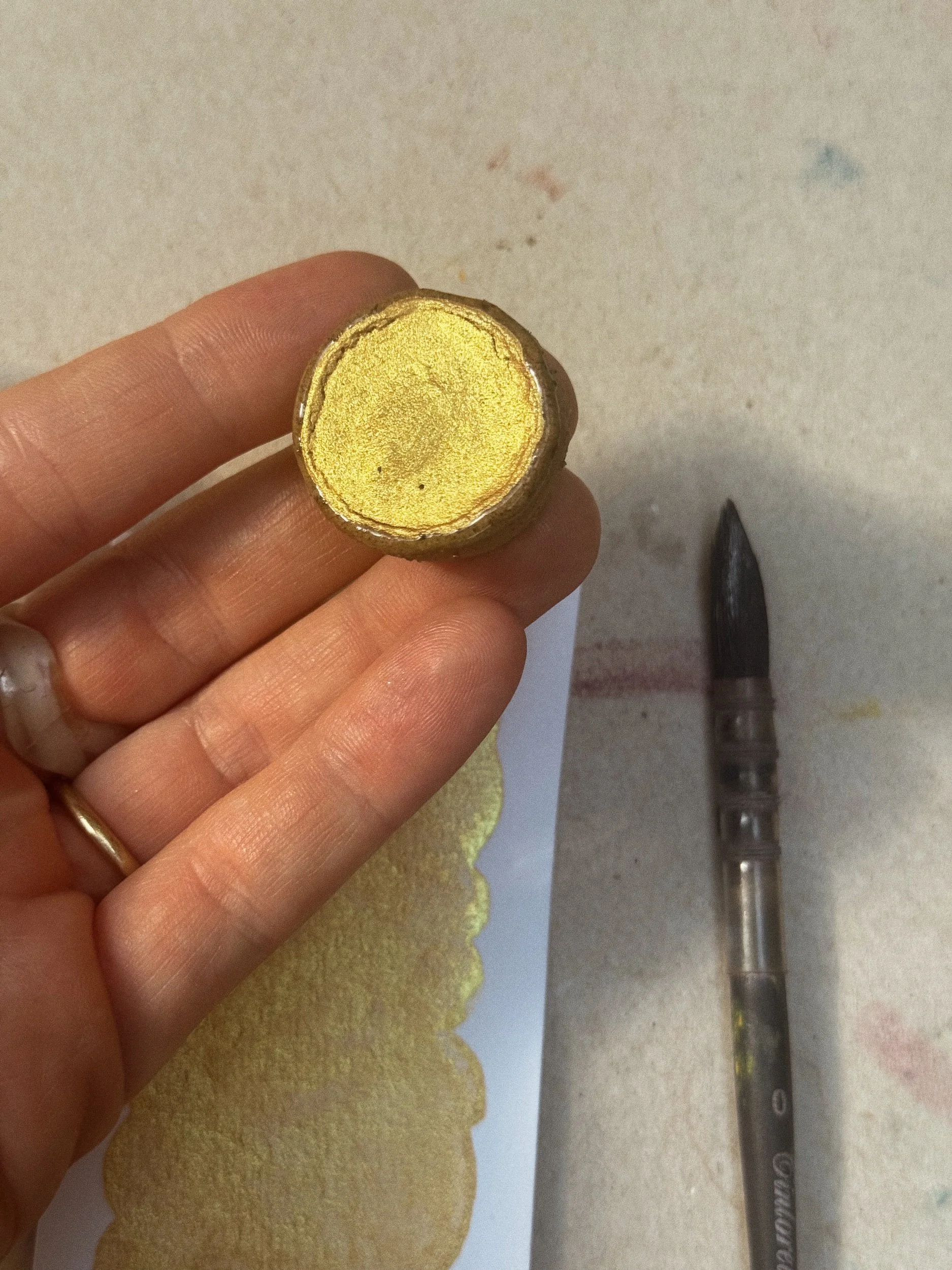 A single handmade ceramic paint pan with my handmade colour West. Contains approximately a half pan worth of paint. Ceramic pan is made with a tan clay with black speckle and glazed with a clear glaze. This is a single pigment that is lightfast, granulating and semi-opaque.