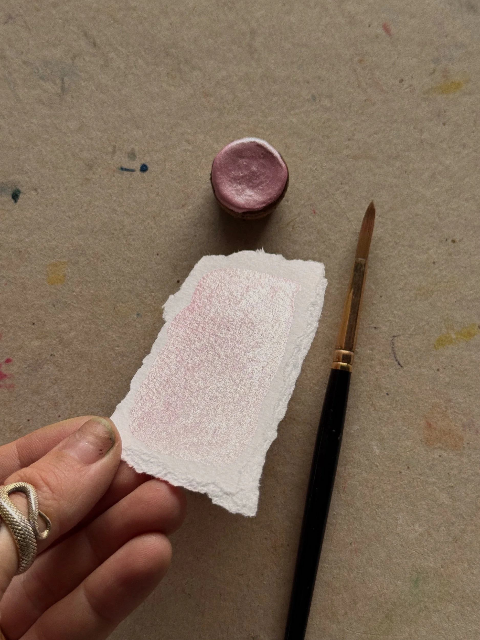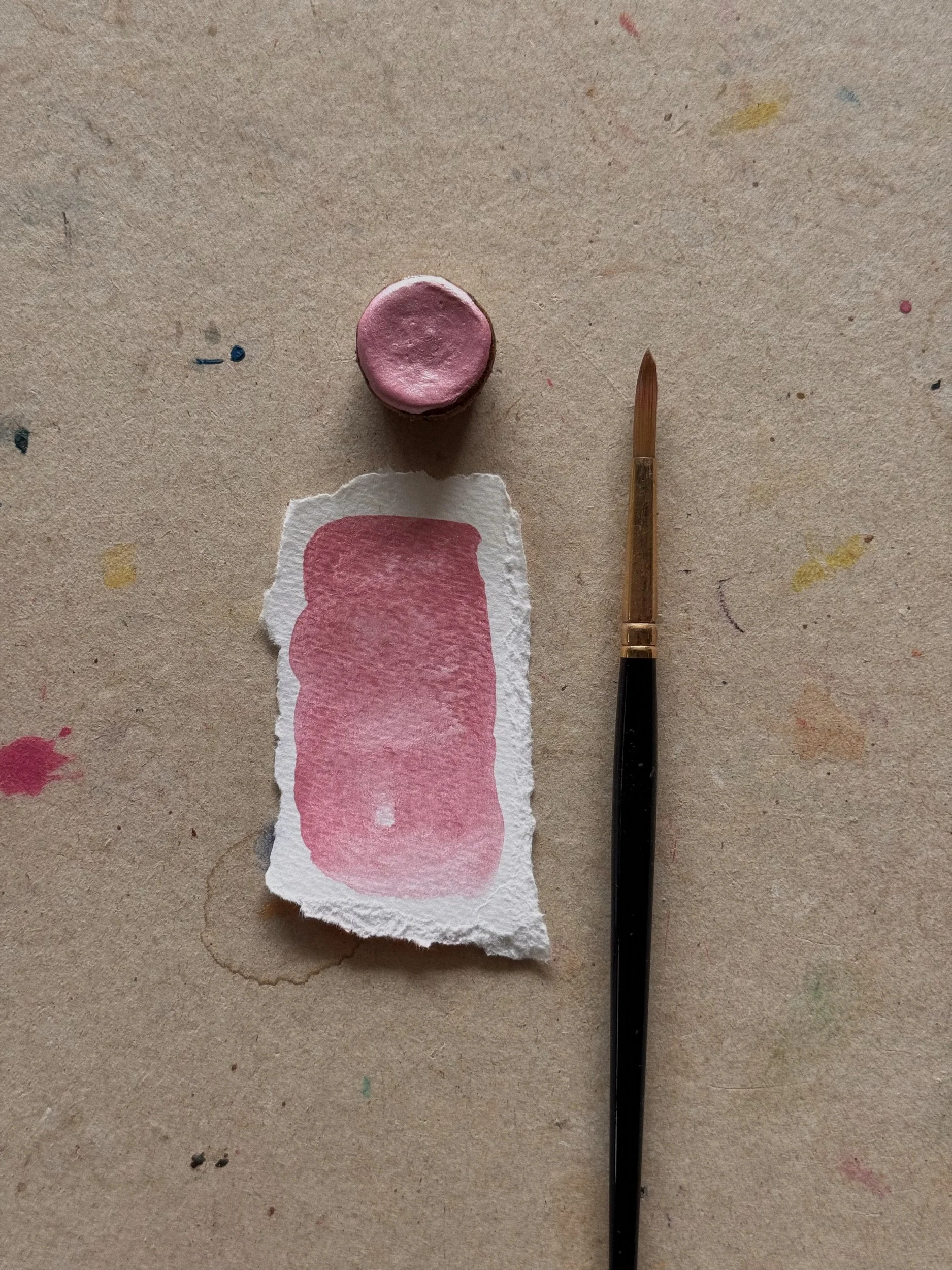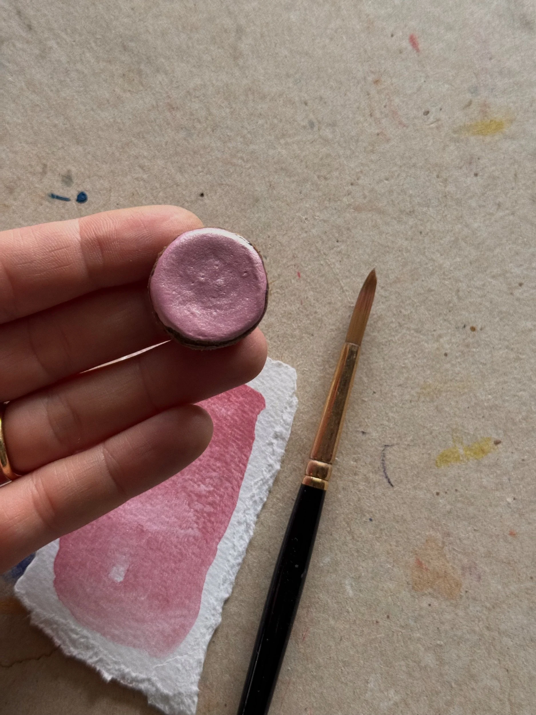 A single handmade ceramic paint pan with my handmade red golden colour Mustang. Contains approximately a half pan worth of paint. This is lightfast, single pigmented shimmer.