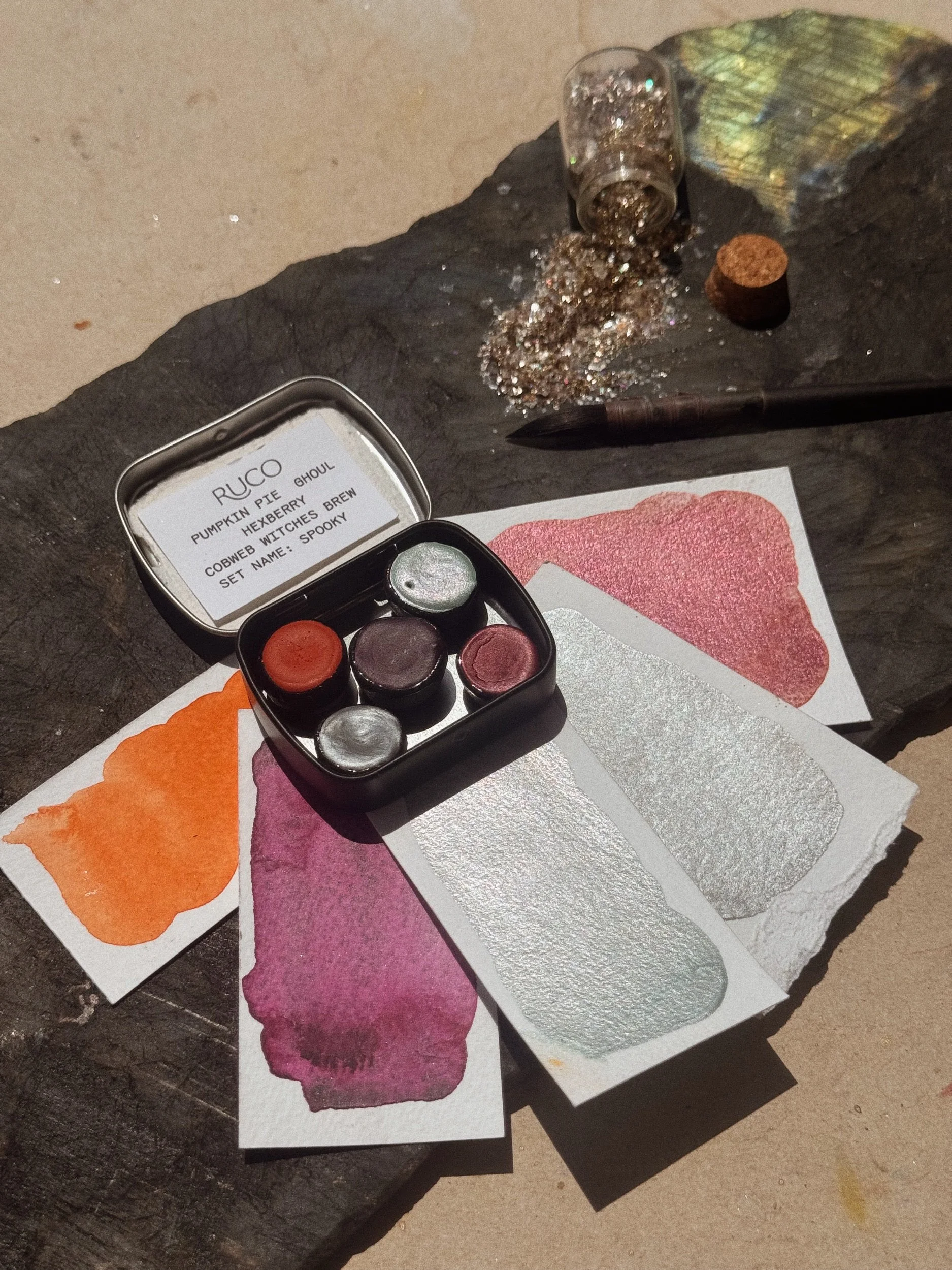 Presented in our signature gold tins sealed with our brand mark and complete with a black swatching paper and name card you’ll have so much fun diving into pretty in pink! There is a new colour in this set called Doris, as well as a new version of Goddess which I had to alter slightly due to pigment availability.