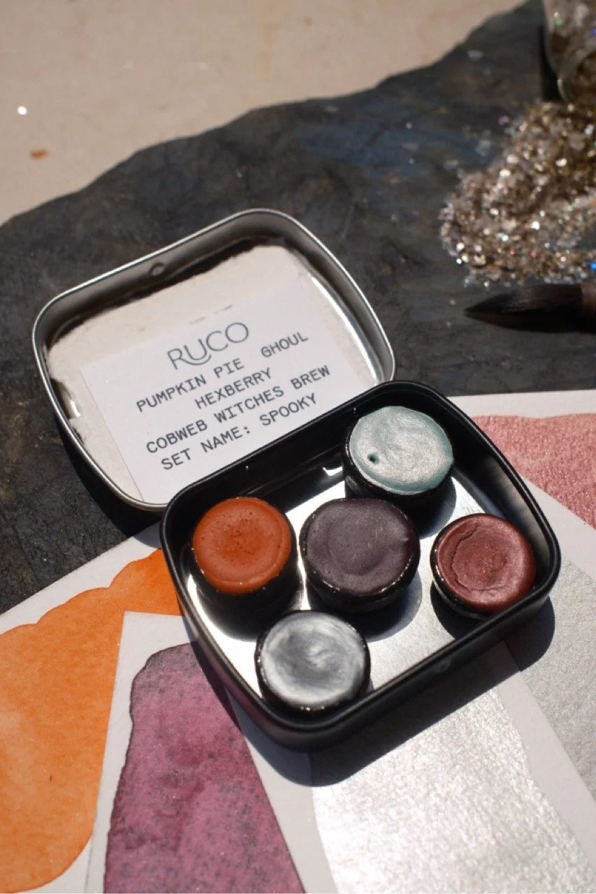 This set of 12 ceramic white mini pans hold a curated selection of all our favourite and bestselling pinks from across the Ruco range. From mattes to shimmers, brights to earthy, pastel to special effect this set has all the pinks you can imagine.